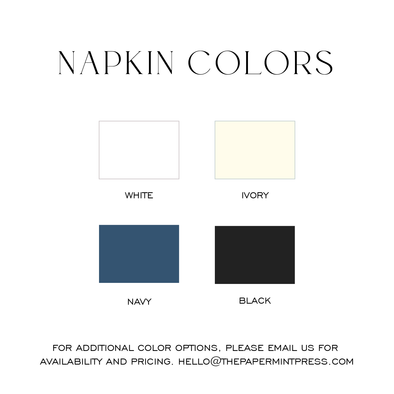 Select the quantity, napkin color, ink or foil color, and enter your personalization details.