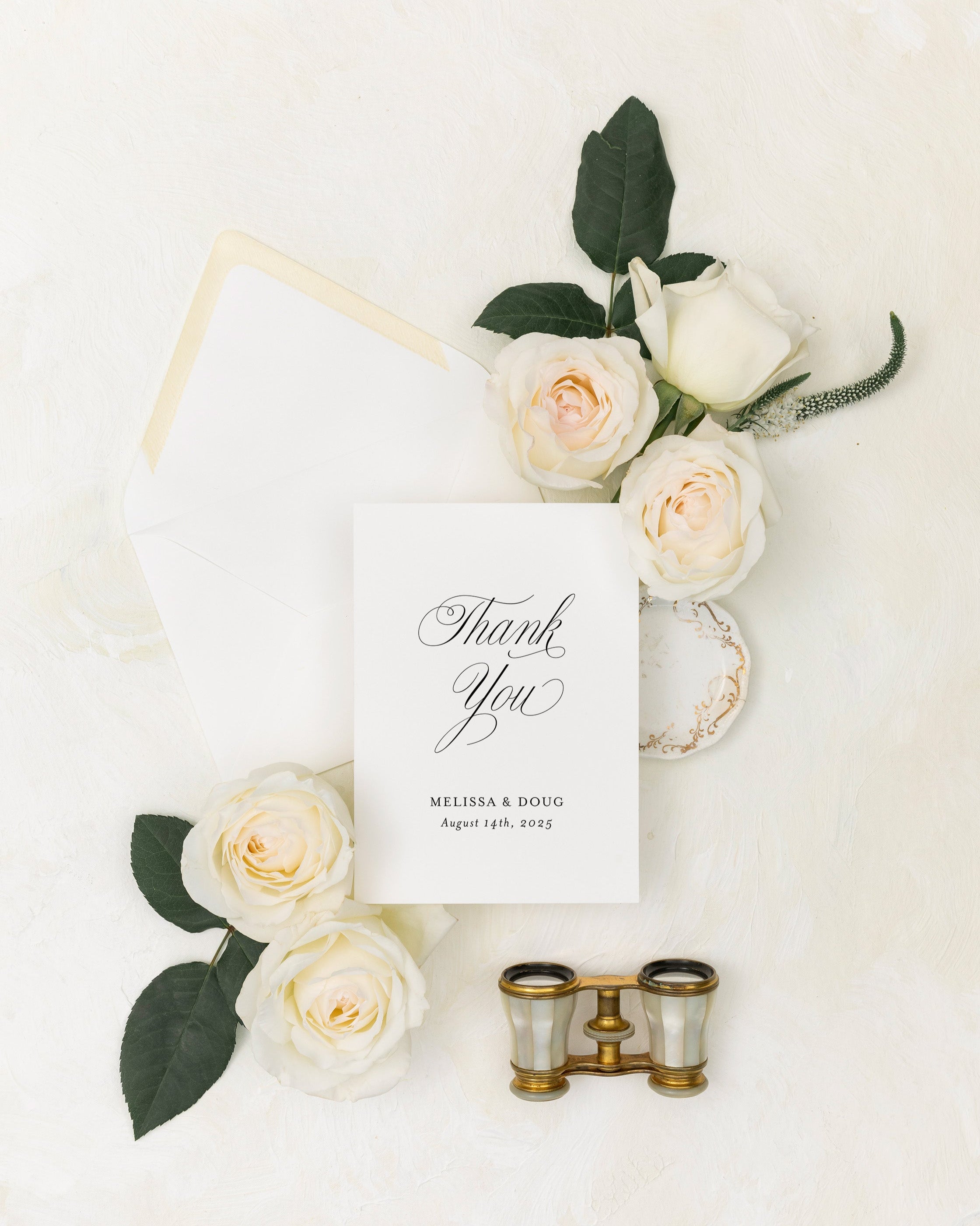 Whether you're sending appreciation after a destination wedding, an intimate ceremony, or a grand celebration, these custom thank you cards add a meaningful, luxurious touch to your post-wedding correspondence.