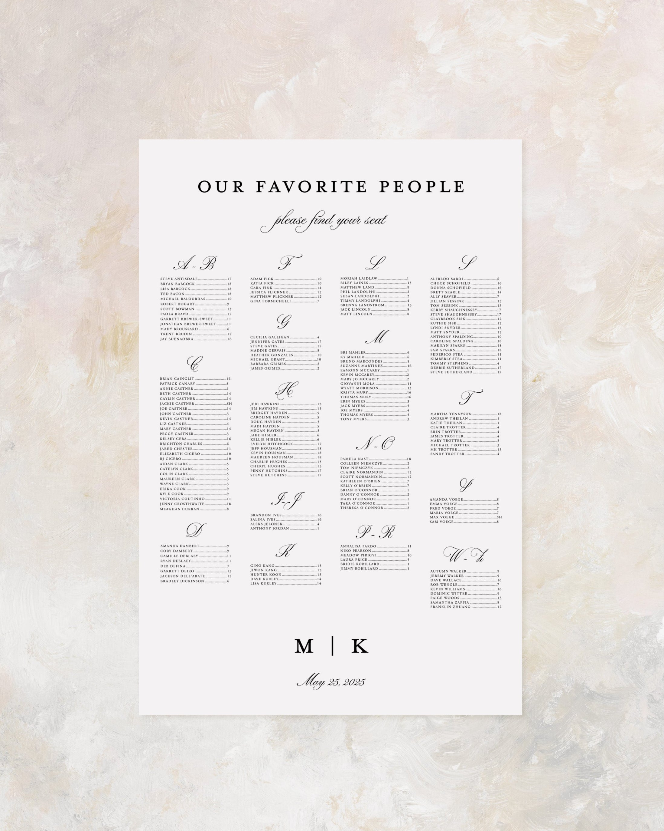 - Seating Chart print sized based on your guest count