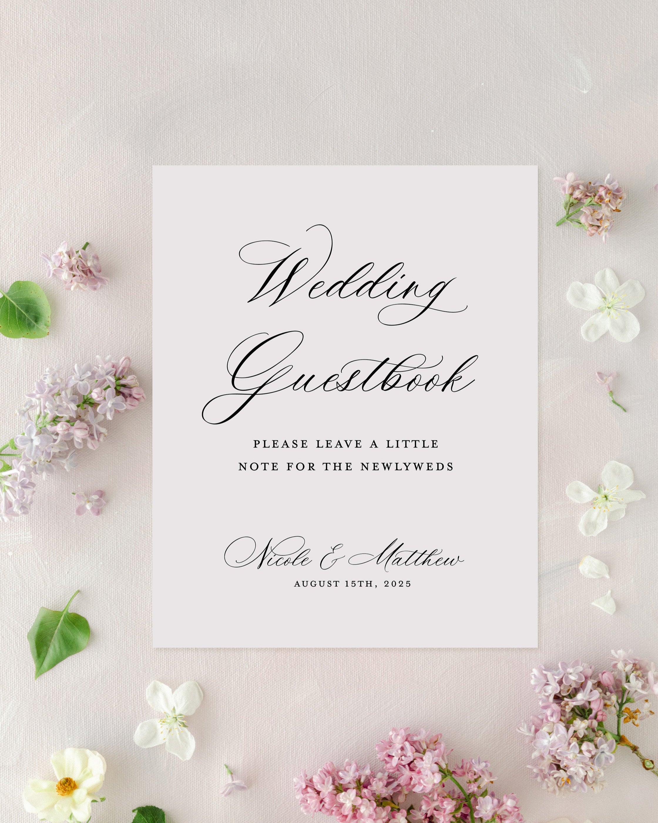 Directing guests to sign a guestbook doesn't have to be boring. Designed for elegance, this sign is more than just a display; it's a statement piece that sets the tone for a memorable and refined experience. This design at its core is minimalist but can be customized to your hearts content.